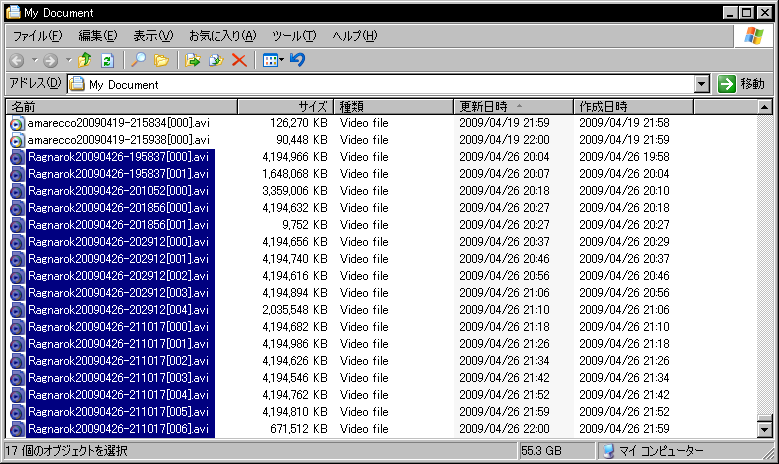 これらをMP4にして最大約650kbps&40MBの動画を数個。1ファイル大体9分弱。